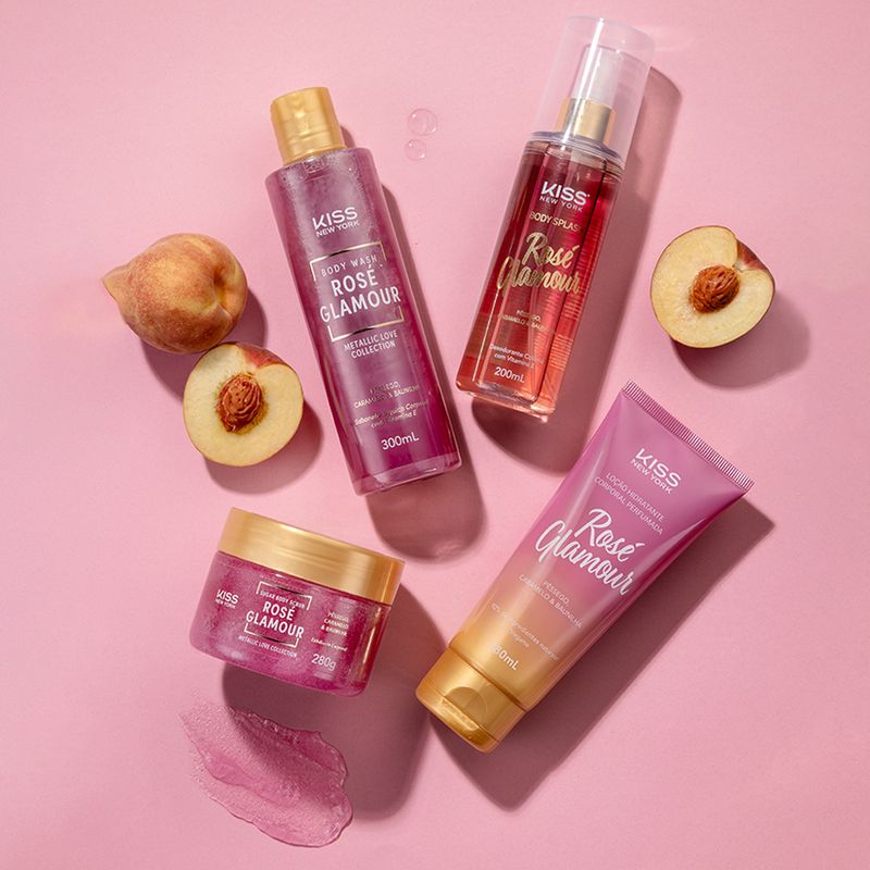 1 Sabonete Líquido Corporal Rosé Glamour 1 Esfoliante Corporal Rosé Glamour 1 Loção Hidratante Corporal Rosé Glamour 1 Body Splash Rosé Glamour